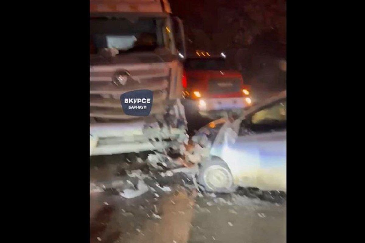 Как сообщили очевидцы происшествия, водителем легковушки была девушка в состоянии алкогольного опьянения. Судя по кадрам видео, размещенного в паблике «В курсе 22», при столкновении с большегрузом у автомобиля сильно «смяло» капот».