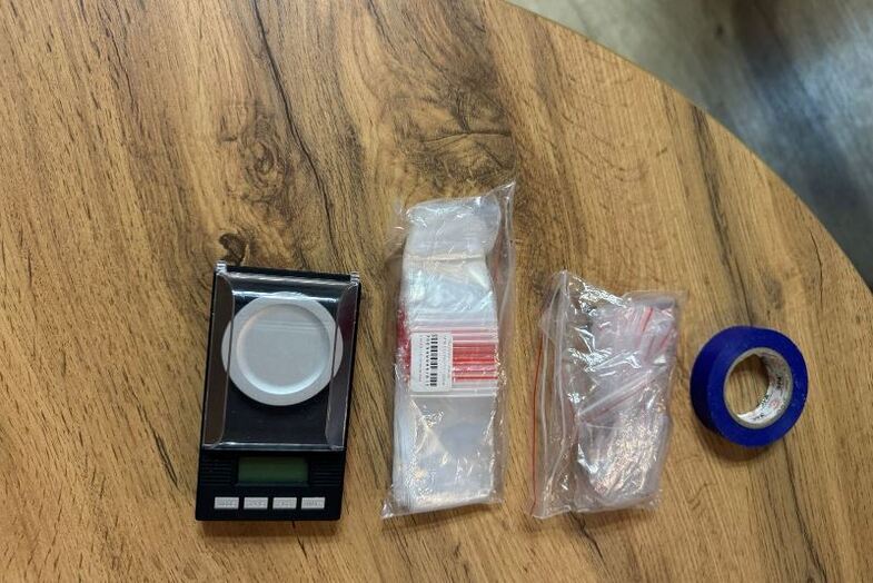 Во время обыска по месту жительства задержанного сотрудники полиции нашли и изъяли 50 свертков с неизвестным веществом, которые были спрятаны в футляре, лежащем на одной из полок в шкафу. Дома у подозреваемого также были изъяты весы, упаковочный материал и банковские карты.