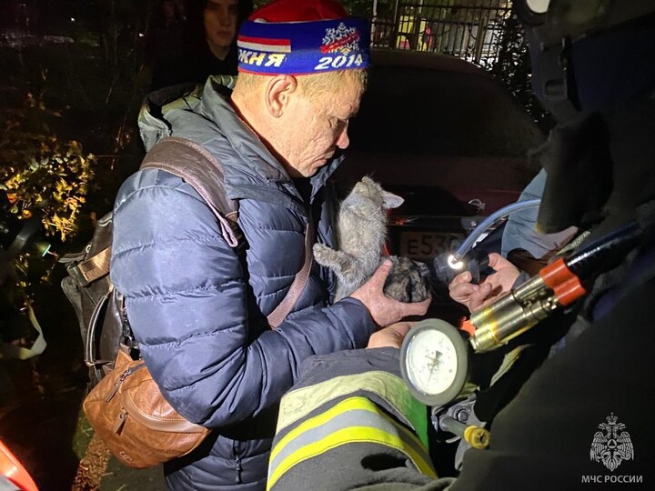 Сотрудник МЧС реанимировал кота, пострадавшего на пожаре в Барнауле
