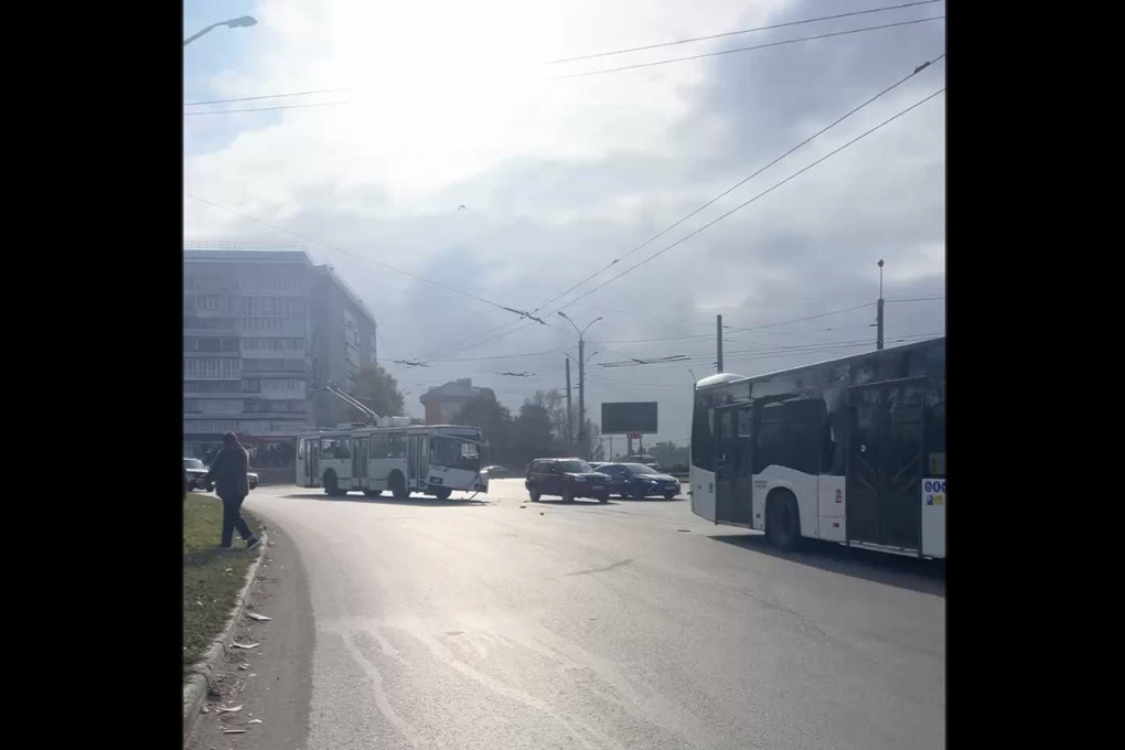 По словам очевидцев в паблике «Инцидент Барнаул», авария произошла неподалеку от краевого Кардиоцентра, прямо на транспортном кольце. Судя по прикрепленным к сообщению видео, тут столкнулись троллейбус №1 и автобус №1. В результате у «рогача» перекосило переднюю часть его корпуса.