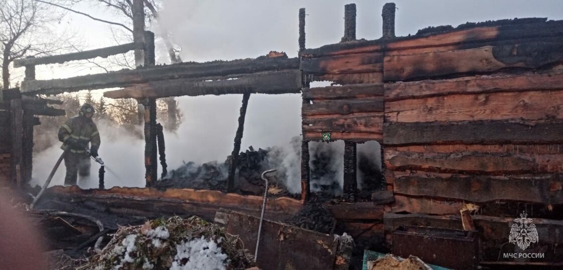 В алтайском селе огонь охватил жилой дом и надворную постройку