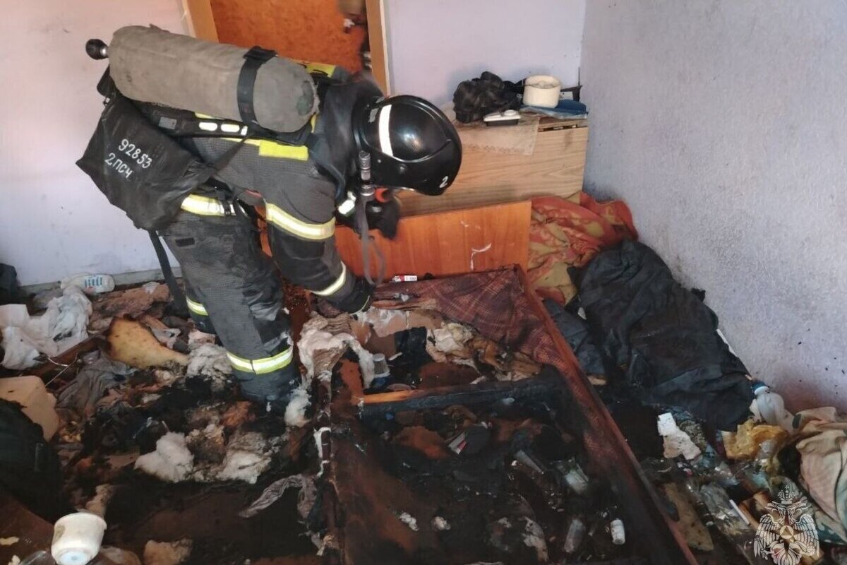 Согласно предварительной версии, причиной возгорания стало неосторожное обращение с огнем (произошло возгорание матраса при курении).