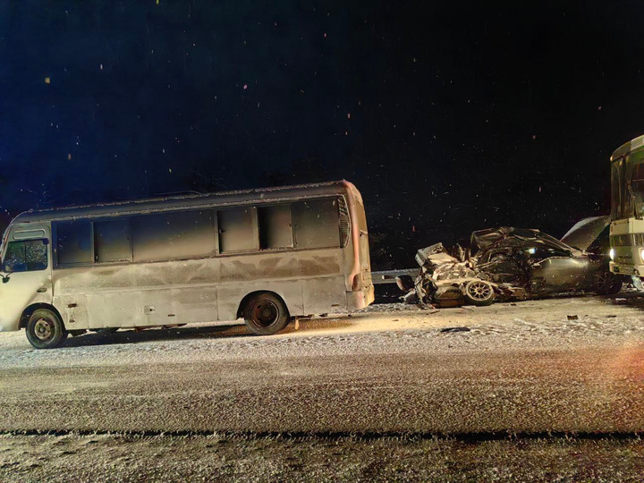 Вечером 5 ноября в Республике Алтай произошло смертельное ДТП. Легковушка на скользкой дороге выехала на встречку и на скорости влетела в пассажирский автобус.