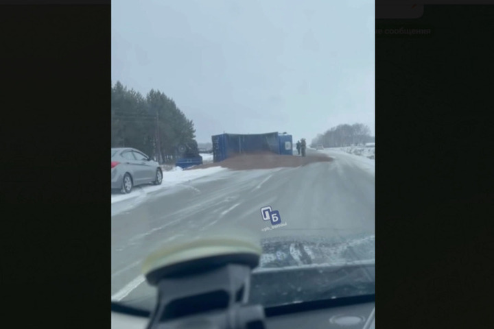 Судя по прикрепленному к сообщению видео, грузовик опрокинулся и частично слетел в кювет. Транспортное средство было чем-то нагружено. В результате аварии на дорогу рассыпался груз, похожий на гречневую крупу. Также транспортное средство перекрыло половину проезжей части.