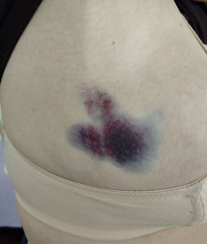 Придя в расстроенном состоянии на работу женщина сначала подумала, что отделалась только порванной курткой. На конце трости скорее всего был острый наконечник. Однако в течение дня ей становилось хуже и вечером она пришла в травмпункт, где врач отправил пациентку на рентген. Снимок показал, что перелома нет. Женщина отделалась сильным ушибом мягких тканей в районе ребер.