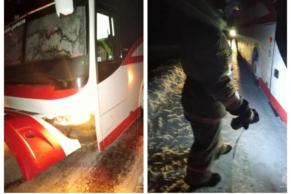 Пассажирский автобус сломался посреди алтайской трассы в сильный мороз