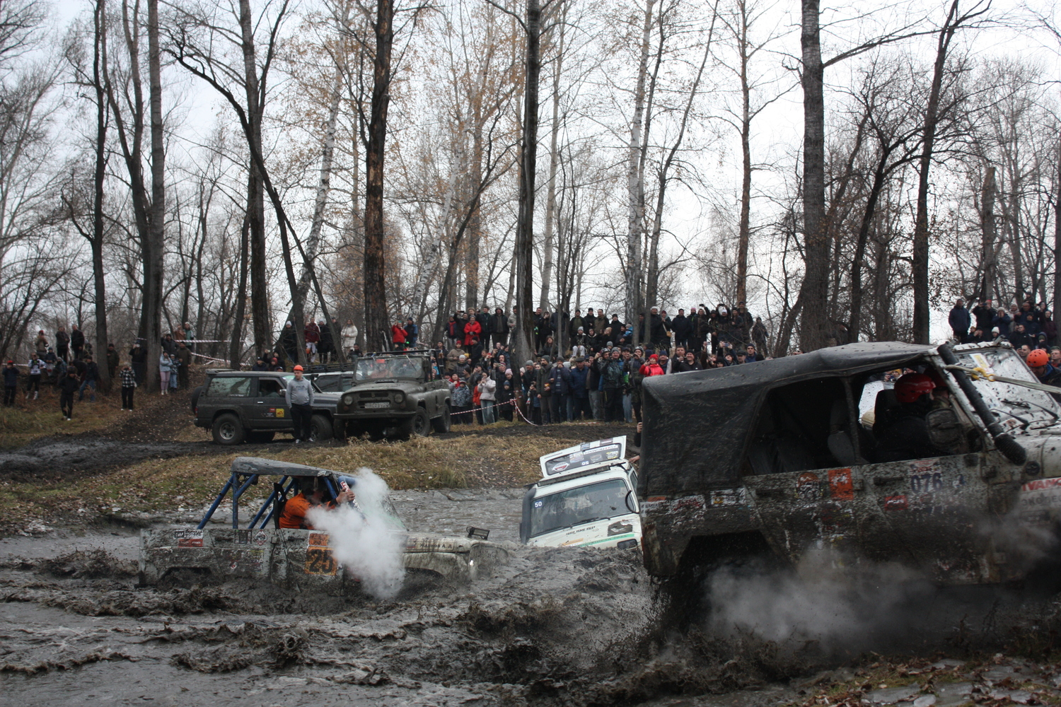 Бездорожье, рев двигателей и запах машинного масла — все это заряжало адреналином и заставляло зрителей кричать, поддерживая гонщиков. Кто-то прятался от брызг грязи, а кто-то наоборот стоял поближе к трассе. Не обошлось и без дикой рыбалки: рыба выпрыгивала из-под колес автомобилей, а взбудораженные наблюдатели ловили ее сочками и даже руками.