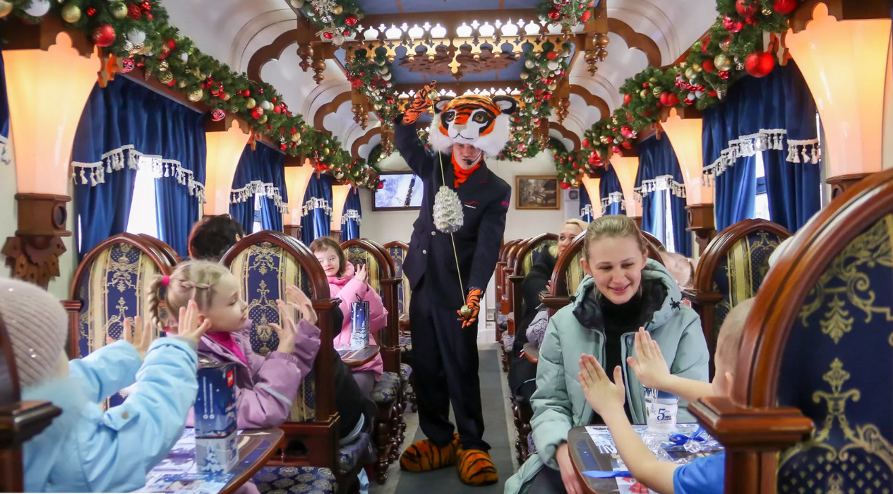В Барнауле 8 декабря десятки мальчишек и девчонок на перроне железнодорожного вокзала встретили Поезд Деда Мороза. Главный новогодний волшебник, Снегурочка и другие герои поприветствовали ребят, а затем гости проследовали в тематические вагоны, где юных барнаульцев ждало погружение в мир сказки.
