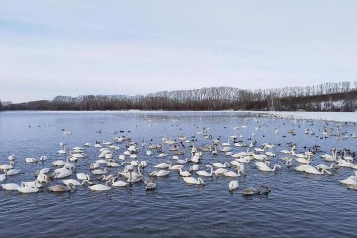 На озере под Рубцовском лебеди останавливаются, чтобы далее продолжить путь к озеру Светлому в Советском районе. Именно там зимуют белоснежные птицы.