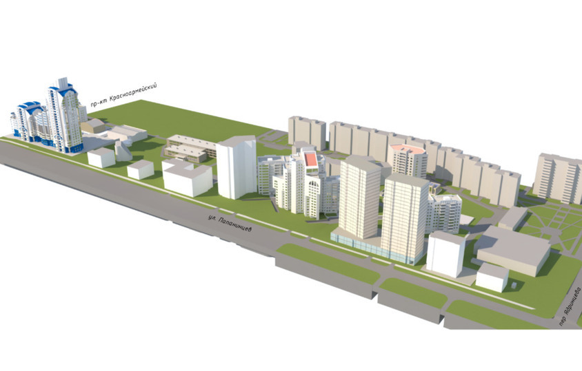 На участке по адресу ул. Папанинцев, 155 запроектирован жилой комплекс из двух башен высотой 20 и 23 этажа. Всего в них разместят 241 квартиру.