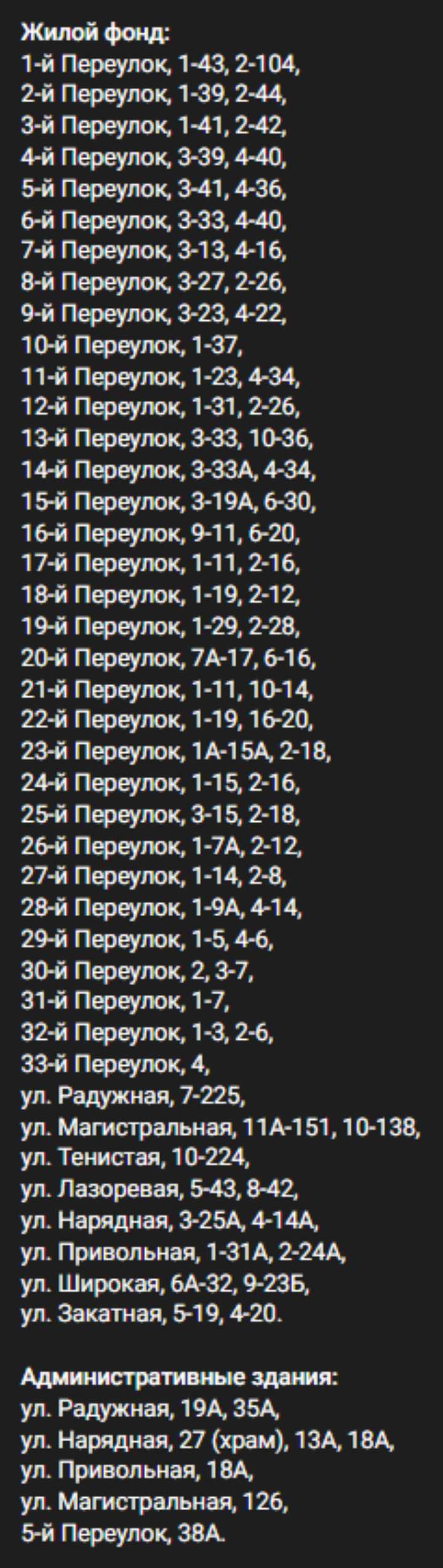 Так, воду отключат в частных домах и административных зданиях по следующим адресам: