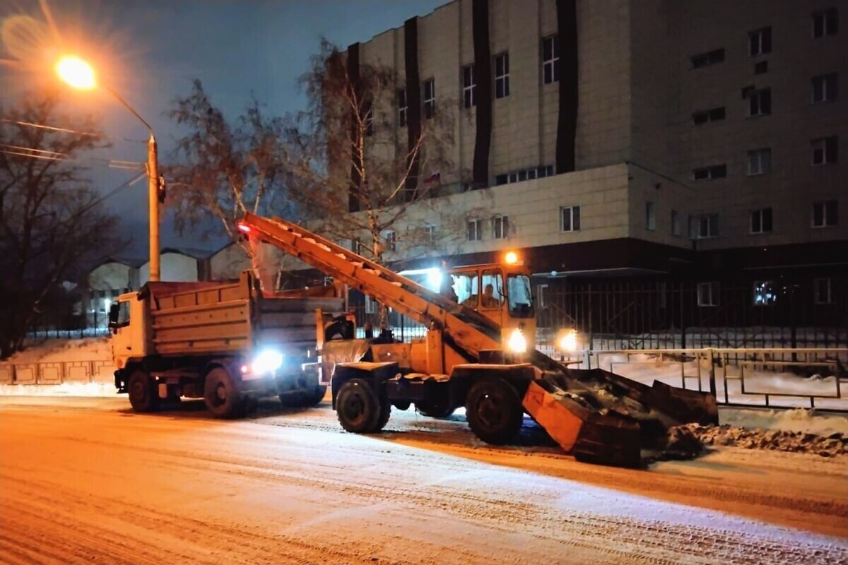 Дорожная служба в ночь с 7 на 8 ноября начала вывозить снег с улиц Барнаула. Также специалисты продолжили очищать дороги и обрабатывать их.