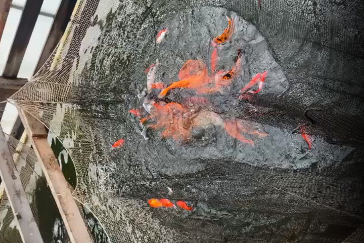Напомним, на зимний период карпов из «Изумрудного» разделили на две группы, так как их развелось слишком много. Чтобы рыбам не было тесно в водоеме, часть из них отправили в один из прудов Калманского района на зимовку. Остальные кои останутся на холодный период у себя «дома».