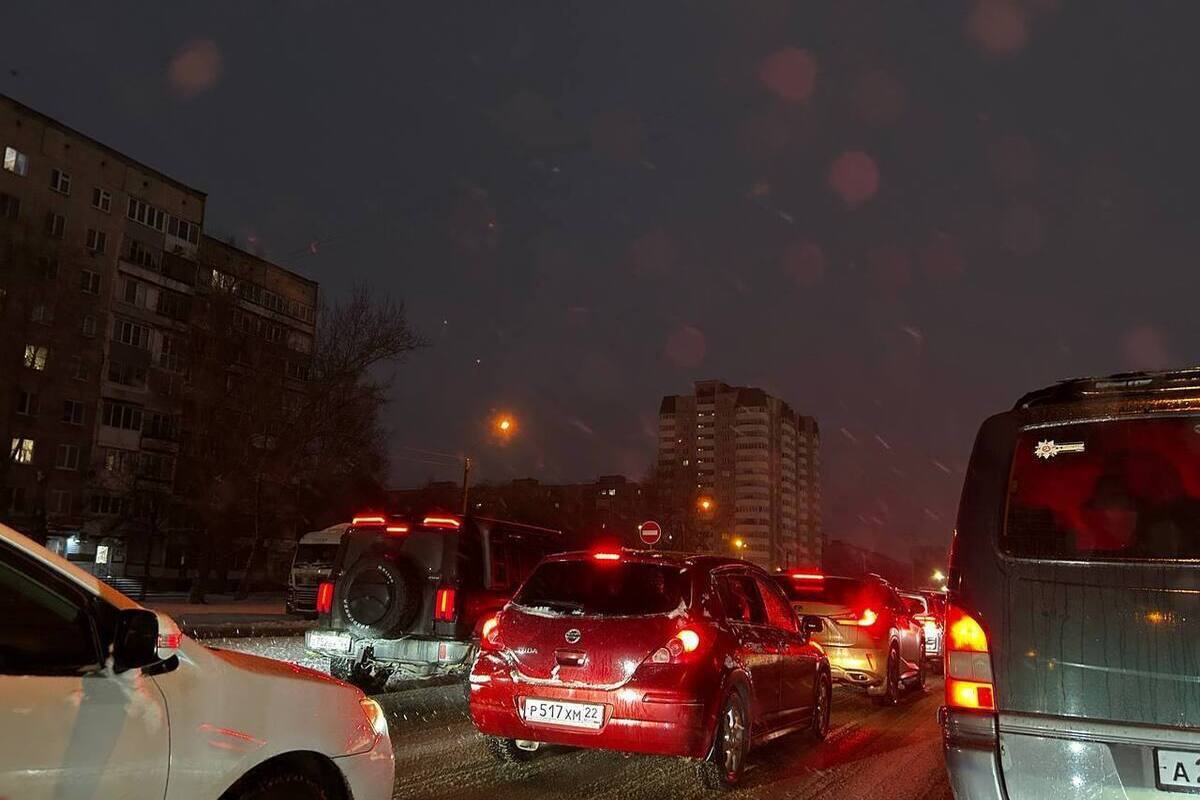 Утром 24 ноября после ночного снегопада на дорогах Барнаула образовались десятибалльные пробки. Заторы фиксировали как на основных магистралях города, так и в спальных районах.