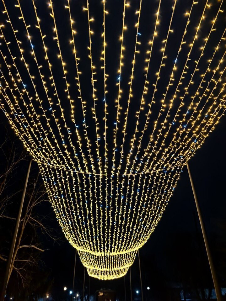 Как сообщили в городской администрации, световой потолок состоит из 28 сияющих нитей общей длиной 40 метров. Монтаж этого объекта осуществлялся за счет бюджета муниципалитета.