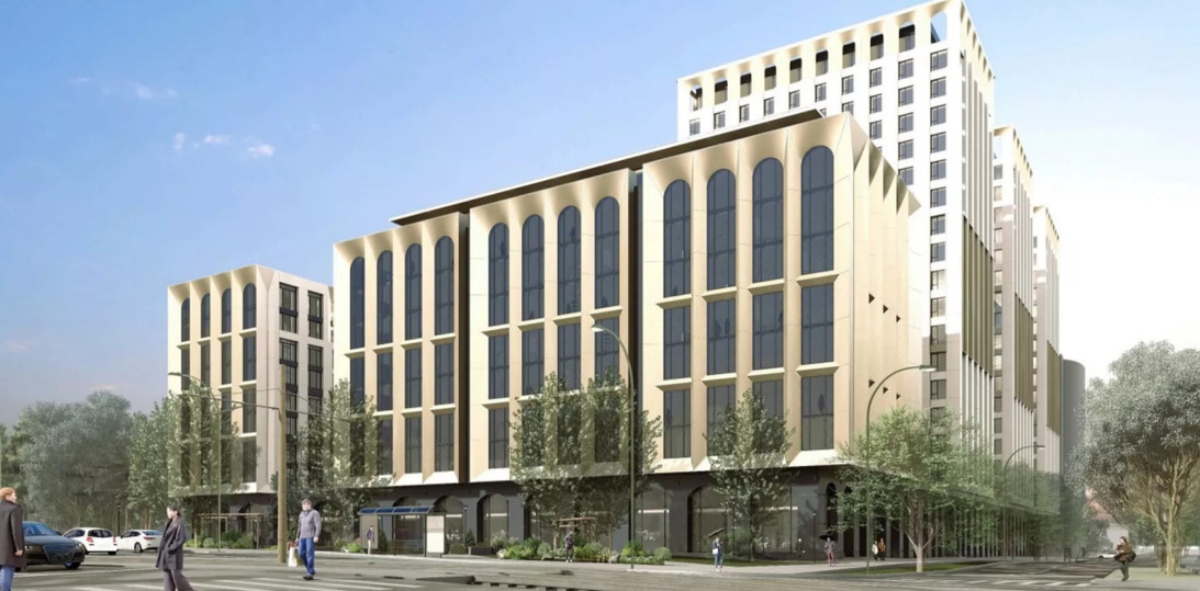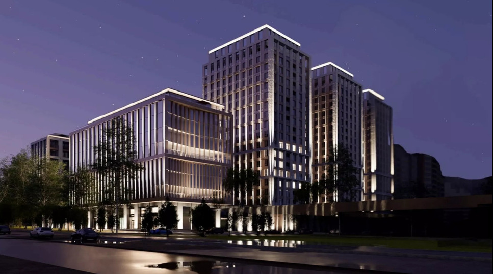 «Нам было важно при таком массивном объеме сделать фасады пластически выразительными. Поэтому в декоре используются глубокие пилоны, а в прорисовке — композитные панели, текстурированные под камень. Мы отдельно разрабатываем рельеф и фактуру материала. Наша задача — сделать так, чтобы он не выглядел глянцево», — рассказал Ермек Кулхамедов, подчеркнув, что такая деталировка фасада станет самодостаточным решением, поэтому зданиям не потребуется нарочито нарядной ночной подсветки.