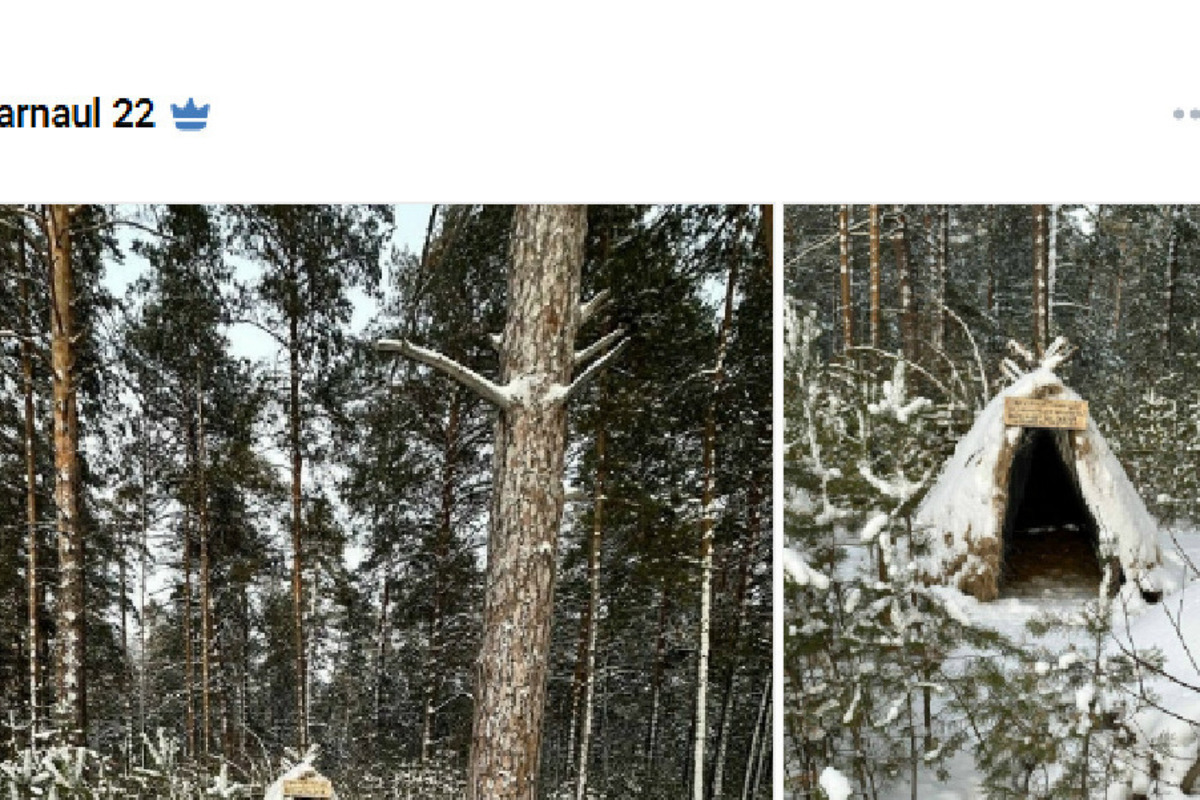 На днях жители Барнаула наткнулись на необычный шалаш в лесу около Трассы Здоровья. Об этом горожане рассказали в паблике «Барнаул 22».