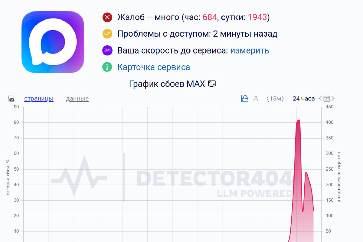 Согласно данным сайта «Downdetector», сбой в работе был зафиксирован около 14:00 часов по местному времени. Спустя почти час жалоб стало в разы меньше. В то же время пользователи в пабликах сообщают, что неполадки в работе МАХа фиксировались не только в Алтайском крае, но и в других регионах.