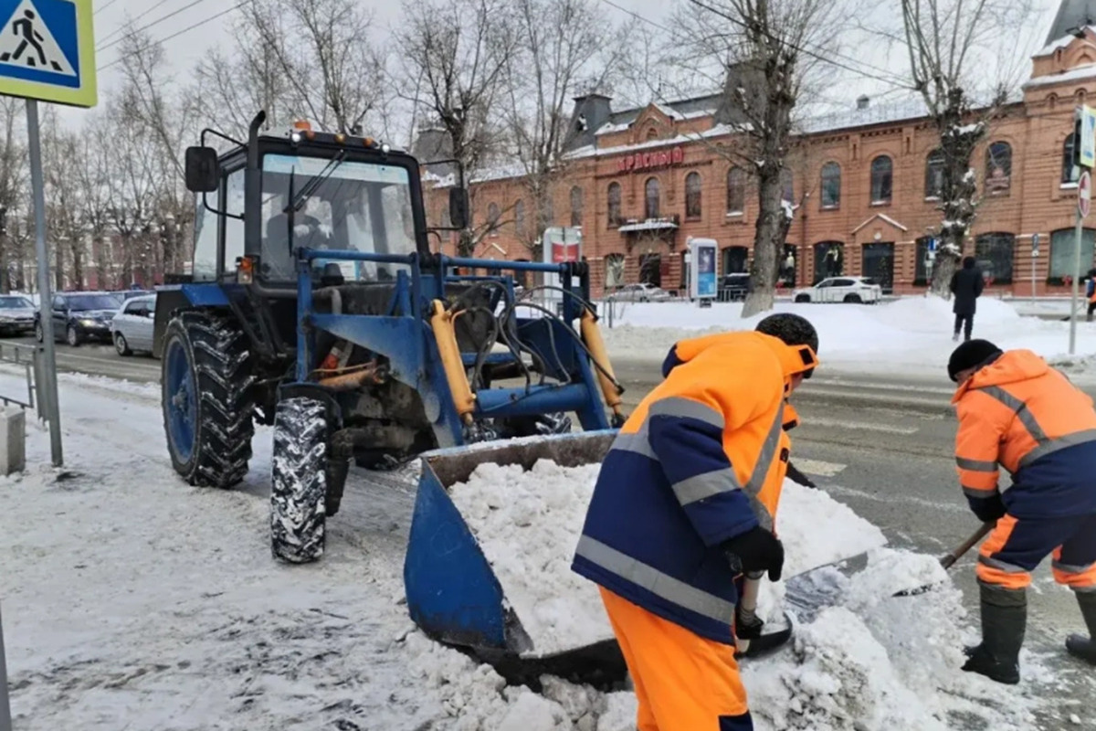 Выше нормы осадков: дорожники продолжают очищать улицы Барнаула после снегопада