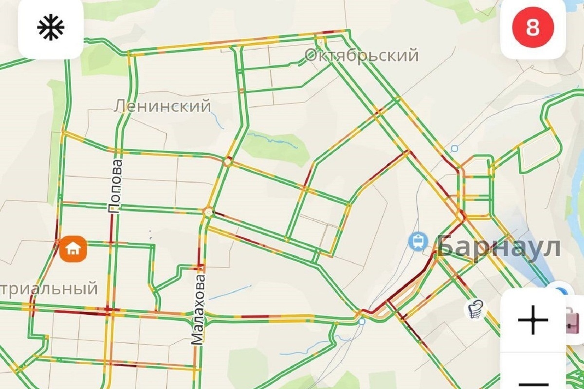 Тяжелая транспортная обстановка на Загородной, Кутузова, шоссе Ленточный Бор, на Змеиногорском и Павловском трактах, на Власихинской, а также на улицах Попова, Балтийской, Лазурной и других участках дорожной сети.