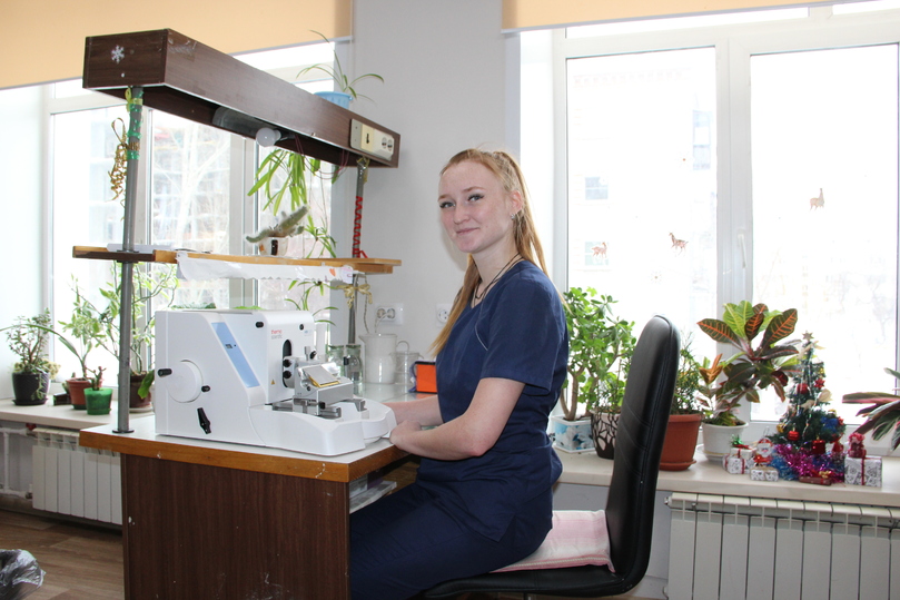 — У нас прекрасная гистологическая лаборатория. Хотя она была образована не в этом, а в позапрошлом году, но успешно развивается, добавляются новые специалисты. И от барнаульской лаборатории образованы еще два филиала в Бийске и Рубцовске.